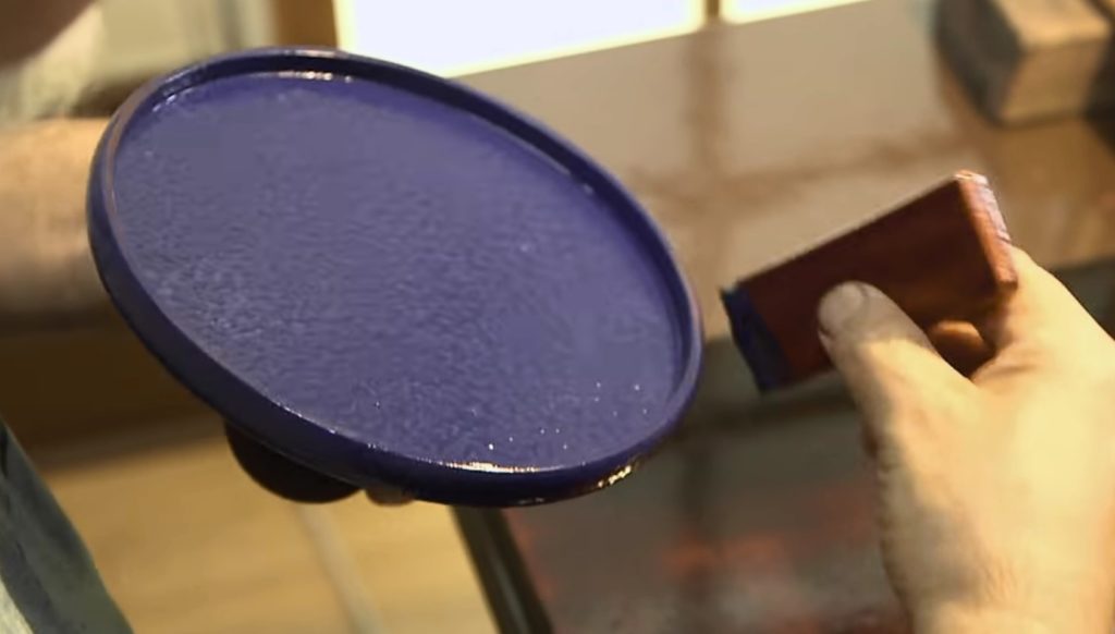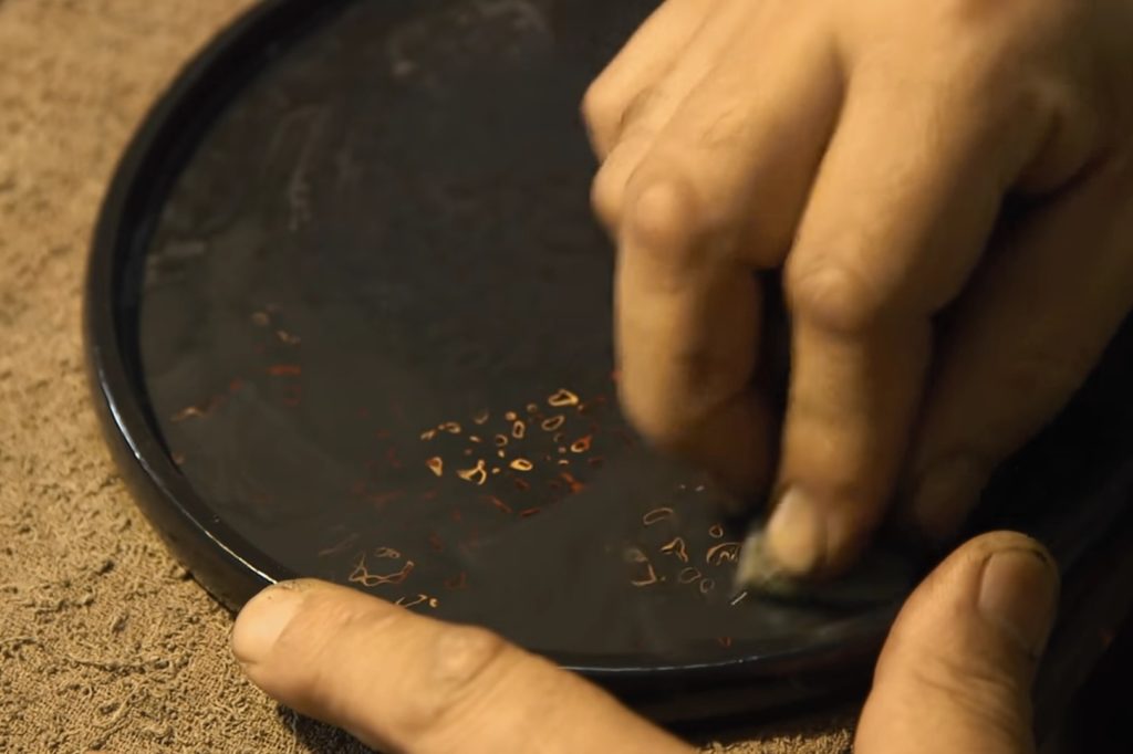 漆がしっかりと乾いたら、研ぎ出しの作業に入ります。