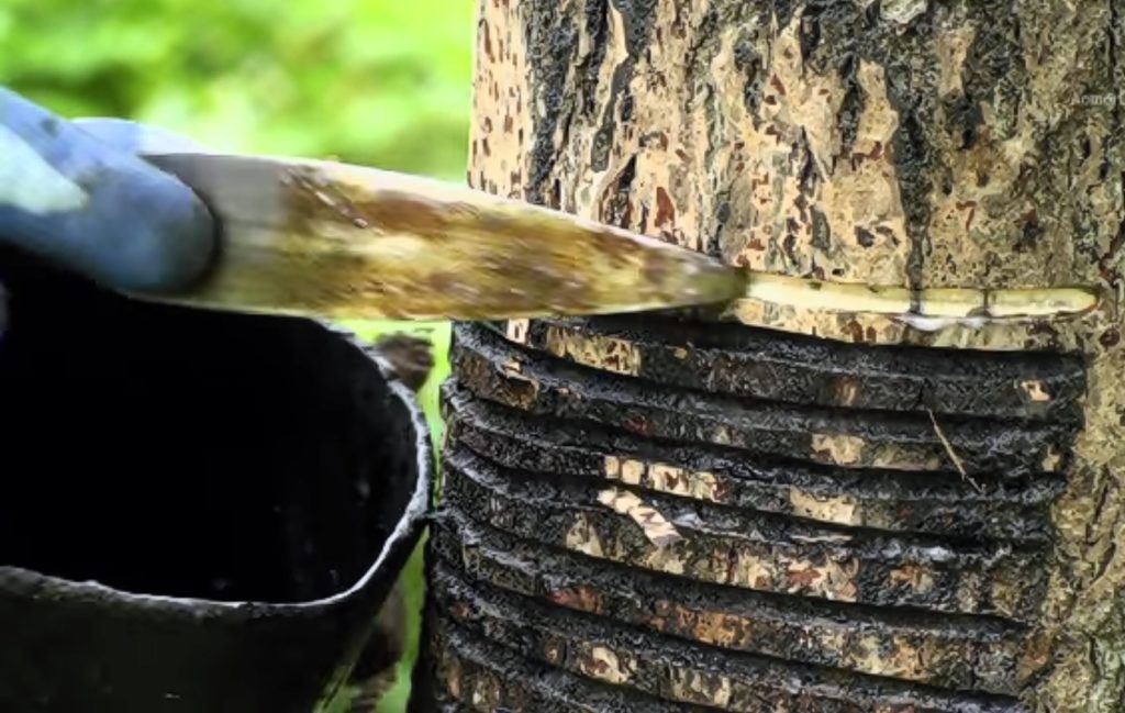 津軽塗の製作に使用する、うるしの採取から始まります!