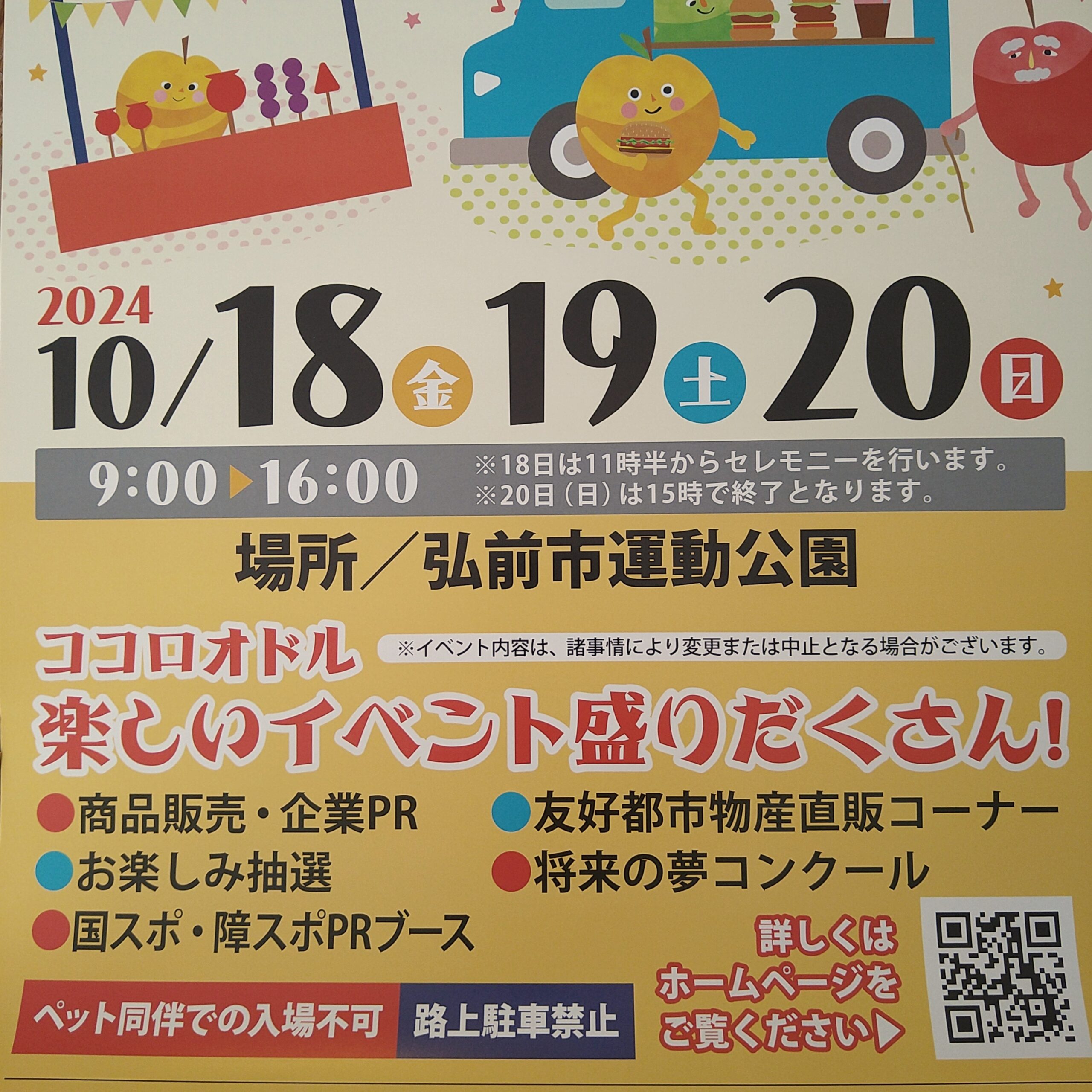 弘前市運動公園でお待ちしております。当社ブースはテニスコート側の114番です。