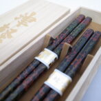 お箸・箸置き・箸箱【イシオカ工芸】 夫婦箸 桐箱入 津軽塗 唐塗呂上 通常価格8800 円 (税込) 購入はこちら ※30,000円以上のお買い上げで送料無料になります。説明津軽塗の技法のなかでも、定番の唐塗呂上技法です。なかでも箸先の加工はしっかりと下地されており、非常に丈夫です!津軽塗のお箸は10年、永くお使いの方は20年も使えると言われております。御結婚祝やお返し物などによく使われることの多い商品です。 商品詳細 素 材:天然木塗 装:漆塗装サイズ:大(235㎜)中(205㎜) コメントは受け付けていません。